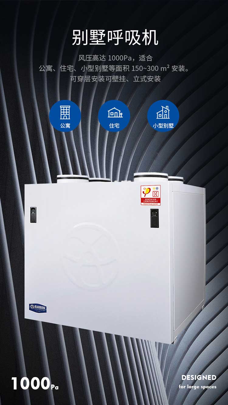 ●別墅大平層新風系統解決方案,風壓高達1000pa!