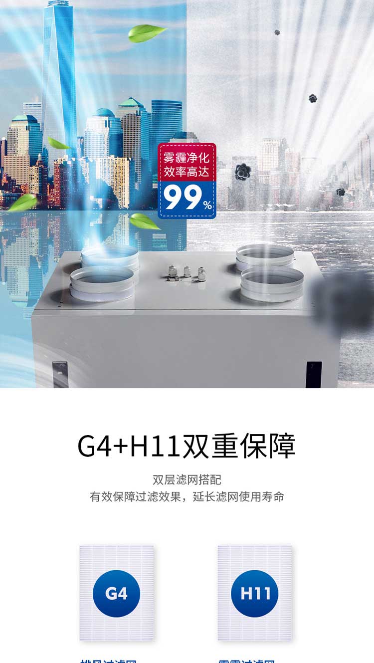 ● G4+H11雙層過濾網保障,凈化效率高達97%